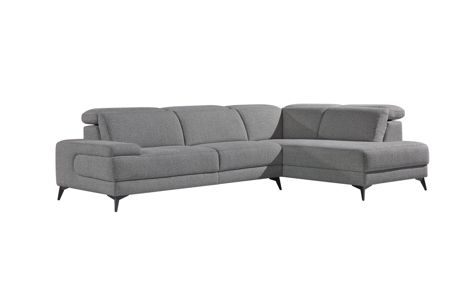 O apoio de rins em espuma 25HR acrescenta ergonomia ao sentar, promovendo um relaxamento mais natural. Já o elemento chaise-longue sem baú amplia o espaço para estender as pernas e desfrutar de momentos de descontração no dia a dia.